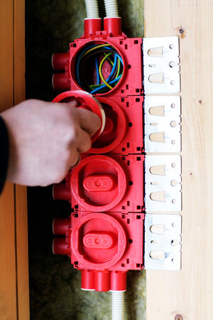 Regelfäste av stål för Flexi+ apparatdosor. Kan spikas eller skruvas in. Med låsfunktion. Fästs i det integrerade mellanstycket.