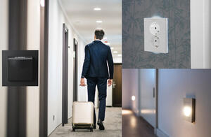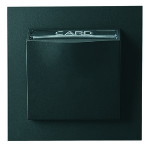 Nyckelkortsbrytare för infällt montage. Med ram och centrumplatta av halogenfri termoplast. Fästskruvavstånd 60mm. Skruvanslutning av ledarna med hissklämma. Avsedd även för kombinationsmontage. Vid utanpåliggande montage användes förhöjningsramar. 1- och 2-polig anslutning är möjlig. Växlande kontakt för indikering. Med blå lysdiodi. Samtliga nyckelkort med max. bredd 54mm kan användas. Montagedjup 11,5mm.