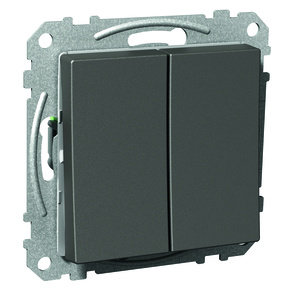 Exxact Strömställare dubbeltrapp med fyrkantig vippa för infällt montage i apparatdosa c/c 60mm eller för utanpåliggande montage i låg dosa 21mm. Kompletteras med valfri Exxact-ram. Snabbanslutning. Antracit