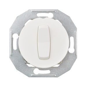 Renova Vippströmställare trapp/1-polig för montage i apparatdosa c/c 60 mm. Inkl fästklor. Vid utanpåliggande montage används dosa 22 mm, E18 311 94/95. Strömställaren har två neutrala överkopplingsklämmor. Snabbanslutning, kompletteras med valfri Renova ram. Vit