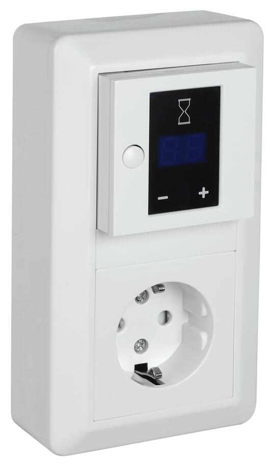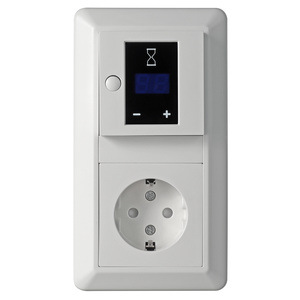 Timerkit med sladdställ med timer som visar återstående tid innan frånslag. Programmerbar som On/on eller On/off. Ingång för extern styrning via tryckknapp. Möjlighet att spärra tider både på max och min. 16A, 2-pol mekaniska brytare. Montagedjup 25mm. Inställning: 1min......20min - 8h