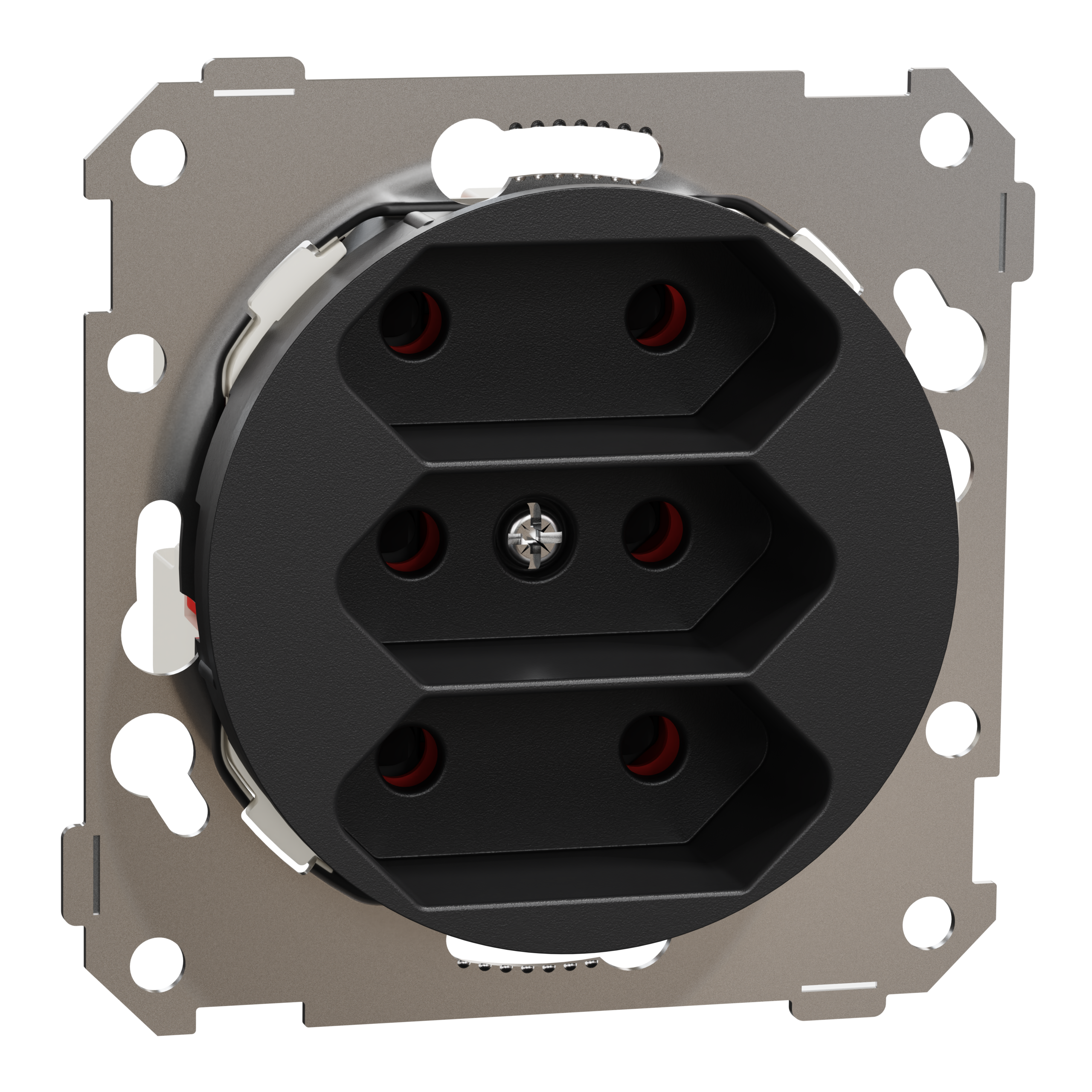 Vägguttag, ELKO One, infälld, 3-vägs, euro, 16A/2,5A, 250V, IP21, skruvanslutning, Svart