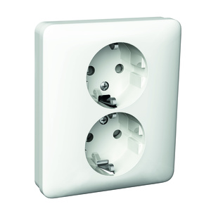 Exxact 2-vägsuttag, Primo jordat, snabbanslutning, petskyddat för infälld montering i apparatdosa c/c 60mm. För utanpåliggande montage används dosa 22mm. Med två neutrala överkopplingsklämmor. Vit