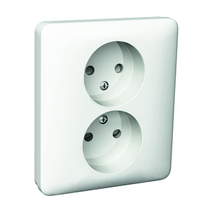 Exxact 2-vägsuttag, Primo ojordat, snabbanslutning, petskyddat för infälld montering i apparatdosa c/c 60mm. För utanpåliggande montage används dosa 22mm. Med två neutrala överkopplingsklämmor. Vit