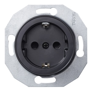 Renova Vägguttag 1-vägs jordat 16A 230V för infällt IP20 montage i apparatdosa inkl fästklor. För utanpåliggande montage används dosa E18 311 96/97. Snabbanslutning, kompletteras med valfri Renova ram. Svart