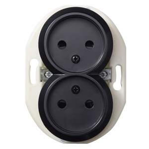 Renova Vägguttag 2-vägs ojordat 16A 230V för infällt montage i apparatdosa inkl fästklor. För utanpåliggande montage används dosa E18 311 98/99. Snabbanslutning, kompletteras med valfri Renova ram. Svart