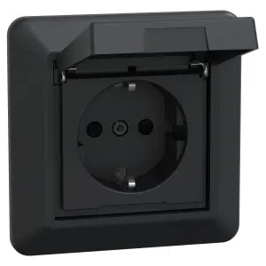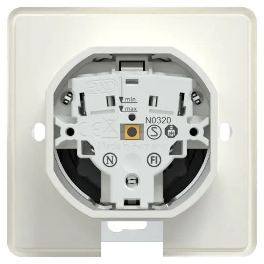 Den uppfyller CEE 7/3 Schuko-standarden och har en 2P+Jord-uttagspoolkonfiguration. Skruvlösa terminaler är utformade för bättre ergonomi, vilket gör installation och montage mycket enklare och snabbare. Dess driftspänning är 250VAC vid 50/60 Hz. Detta uttag är utformat för infällt montage för utanpåliggande montage används förhöjningsram.