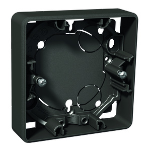 Exxact 1-facksdosa 21mm för utv mont nyckelhål för mont, över app.dosa c/c 60mm. Utbrytningar i bottendel, möjligheter till att montera dragavlastning och skiljevägg. Separat bottendel och förhöjningsram förenklar installationen. Antracit