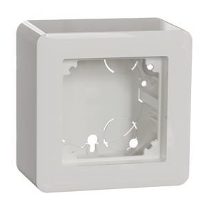 Dosa 1-fack för utanpåliggande montering. Separat botten- och lockdel för att förenkla installationen. Ramen är integrerad i kåpan så att ingen separat Exxact-ram behövs. 47mm hög. Nyckelhål för montage över apparatdosa c/c 60mm. Passar alla Exxact 1-facksprodukter. Ingångar för kablar från baksidan genom utbrytningar i bottenplattan eller från alla sidor med hjälp av utklipp i locket. Produkten är IP20. IP21 då kabeln förs in underifrån. Möjlighet att montera dragavlastning.