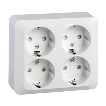 Exxact Vägguttag 4-vägs jordat snabbanslutning, utanpåliggande IP21 montage Vit