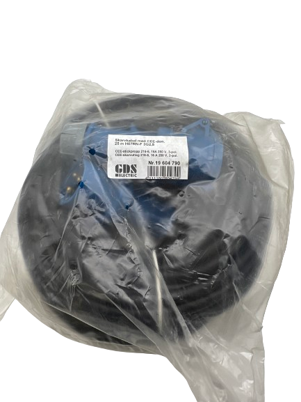Skarvkabel 1-fas 16A 200-250V IP44. Komplett med monterade IEC/CEE anslutningsdon. Svart gummikabel H07RN-F 3G2,5. IP44