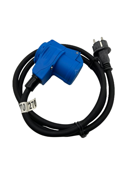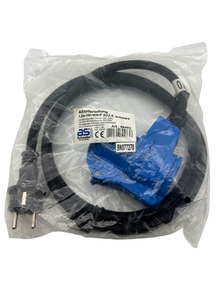 CEE-adapterkabel med vinkelkoppling, 230V/16A, 3-polig jordad kontakt, 1,5m gummikabel H07RN-F 3G2.5.