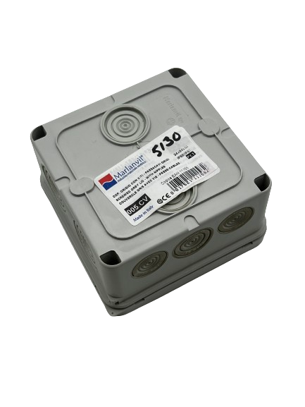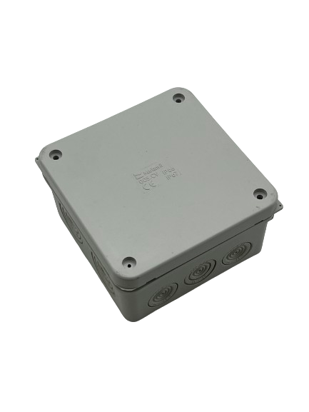 Utanpåliggande kopplingsdosa av ljusgrå halogenfri, slagfast termoplast och utan kopplingsplint. Locken är plomberbara. Kabelinföringarna är integrerade i dosan. 12st kabelgenomföringar, varav 2st i botten.